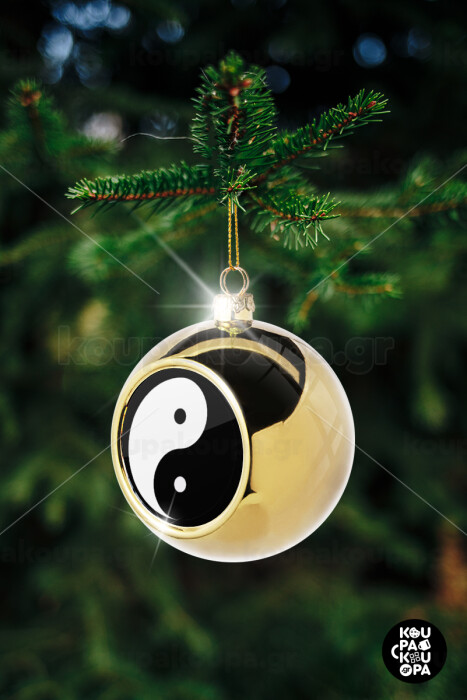 Yin Yang, Golden Christmas tree ball ornament 8cm
