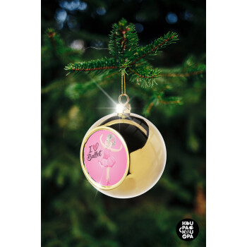 I Love Ballet, Golden Christmas tree ball ornament 8cm