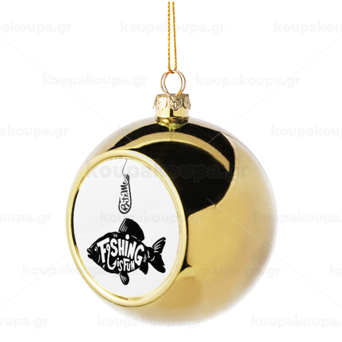 Fishing is fun, Golden Christmas tree ball ornament 8cm