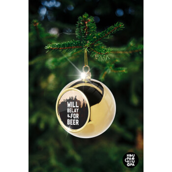 Will Belay For Beer, Golden Christmas tree ball ornament 8cm