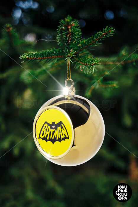 Batman classic logo, Golden Christmas tree ball ornament 8cm