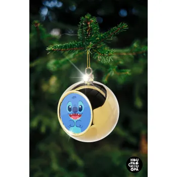 Lilo & Stitch blue, Golden Christmas tree ball ornament 8cm