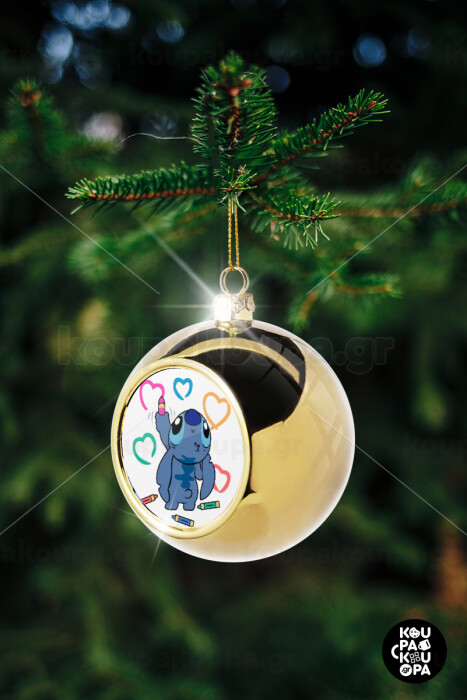 Lilo & Stitch painting, Golden Christmas tree ball ornament 8cm