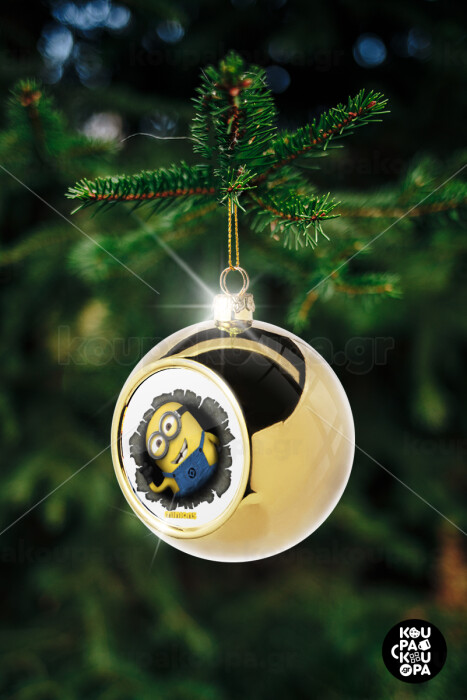 Minions hi, Golden Christmas tree ball ornament 8cm