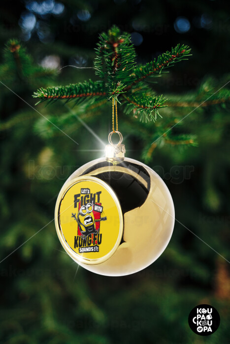 Minions Let's fight with kung fu sounds, Golden Christmas tree ball ornament 8cm