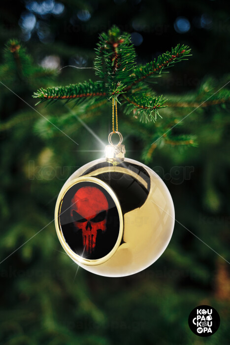 Red skull, Golden Christmas tree ball ornament 8cm