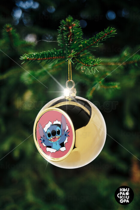Stitch hello!!!, Golden Christmas tree ball ornament 8cm