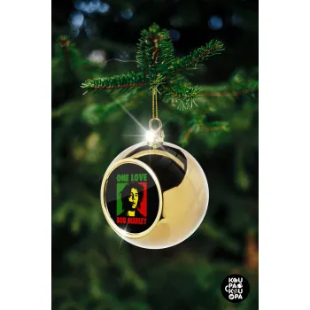 Bob marley, one love, Golden Christmas tree ball ornament 8cm