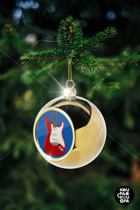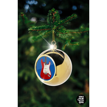 Guitar stratocaster, Golden Christmas tree ball ornament 8cm