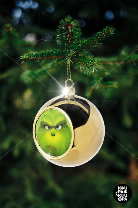 mr grinch, Golden Christmas tree ball ornament 8cm