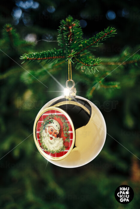 Santa Claus, Golden Christmas tree ball ornament 8cm