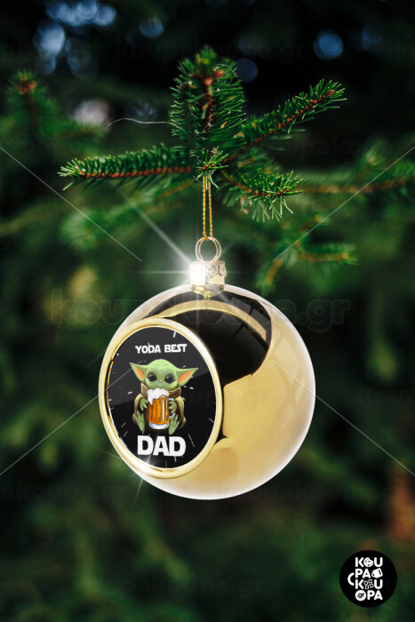 Yoda Best Dad, Golden Christmas tree ball ornament 8cm