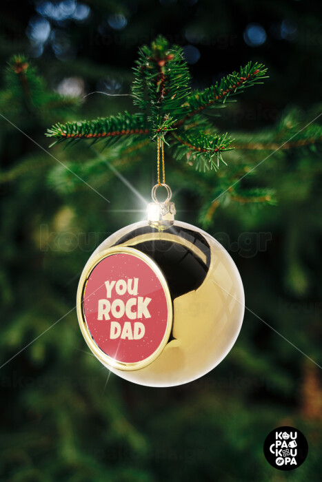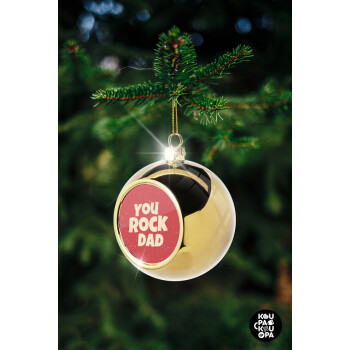 YOU ROCK DAD, Golden Christmas tree ball ornament 8cm