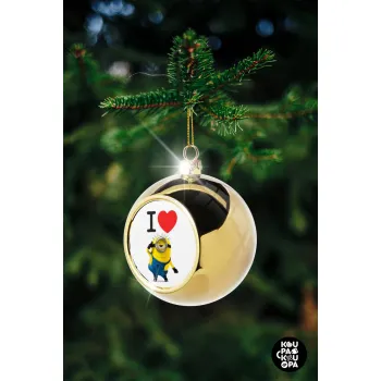 I love by minion, Golden Christmas tree ball ornament 8cm
