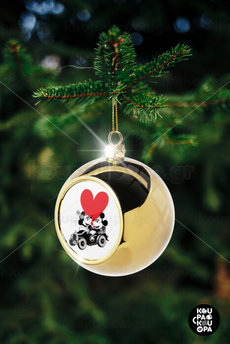 Mickey & Minnie love car, Golden Christmas tree ball ornament 8cm