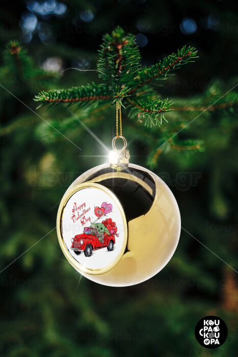 Yoda, happy valentines day (xoxo), Golden Christmas tree ball ornament 8cm