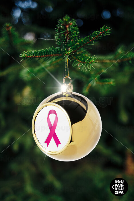 World cancer day, Golden Christmas tree ball ornament 8cm