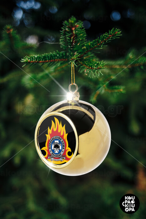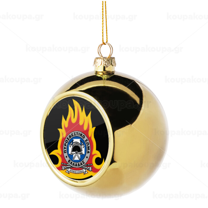 Πυροσβεστικό σώμα Ελλάδος σκούρο, Golden Christmas tree ball ornament 8cm