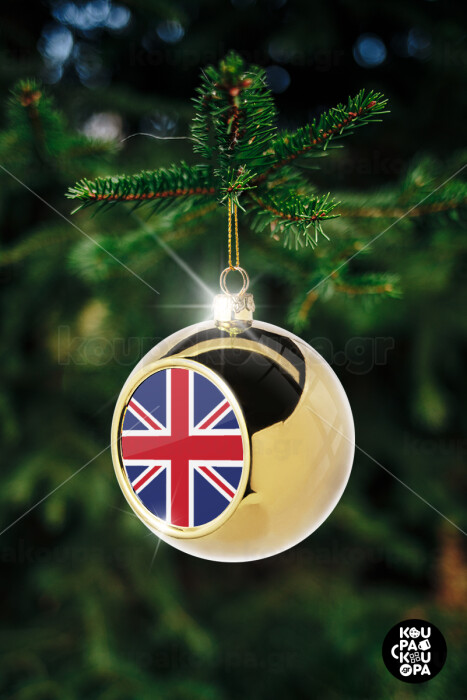 UK Flag, Golden Christmas tree ball ornament 8cm