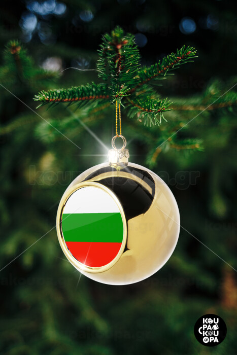 Bulgaria flag, Golden Christmas tree ball ornament 8cm