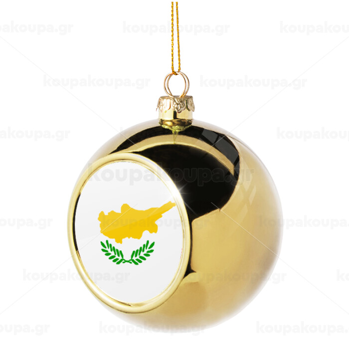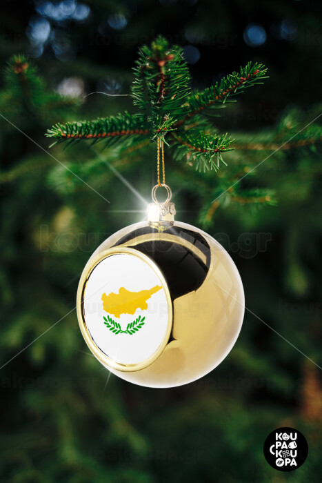 Cyprus flag, Golden Christmas tree ball ornament 8cm