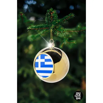 Greece flag, Golden Christmas tree ball ornament 8cm