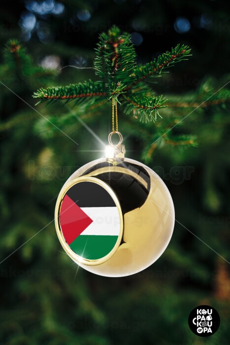 Palestine Flag, Golden Christmas tree ball ornament 8cm
