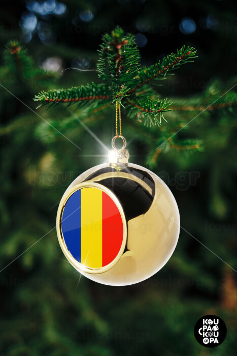 Romania flag, Golden Christmas tree ball ornament 8cm