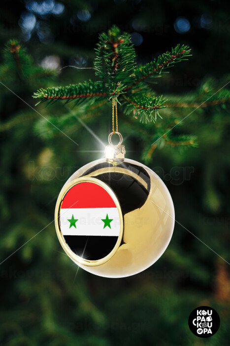 Syria flag, Golden Christmas tree ball ornament 8cm