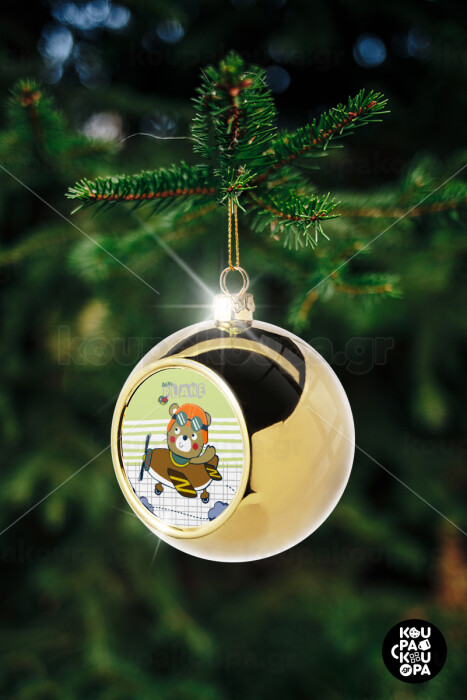 Kids Plane, Golden Christmas tree ball ornament 8cm