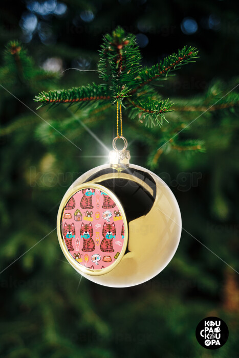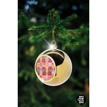 Cats and Fishes, Golden Christmas tree ball ornament 8cm