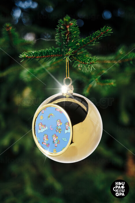 Unicorn pattern, Golden Christmas tree ball ornament 8cm