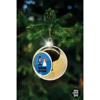 8bit Game Over Couple Wedding, Golden Christmas tree ball ornament 8cm