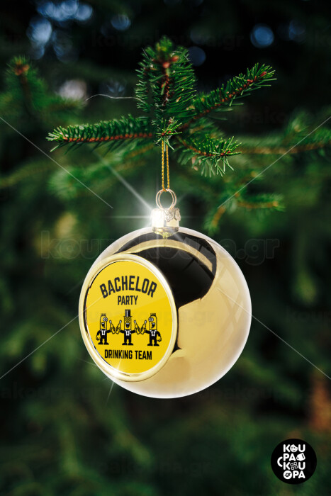 Bachelor party, Golden Christmas tree ball ornament 8cm