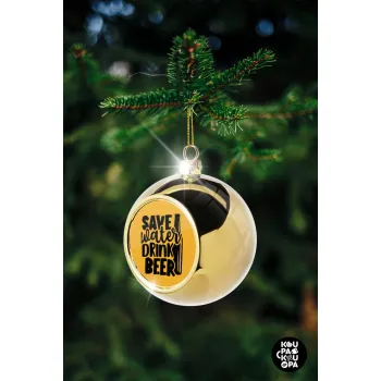 Save Water, Drink BEER, Golden Christmas tree ball ornament 8cm