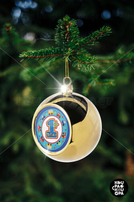 Happy 1st Birthday, Golden Christmas tree ball ornament 8cm