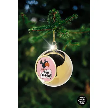 Happy Bird Day, Golden Christmas tree ball ornament 8cm