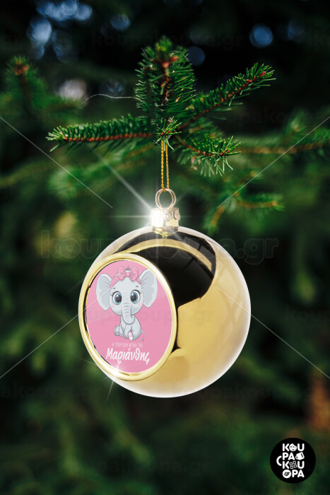 Η νονά μου, ελεφαντάκι ροζ, Golden Christmas tree ball ornament 8cm