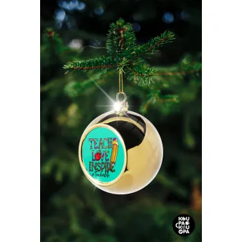 Teach, Love, Inspire, Golden Christmas tree ball ornament 8cm