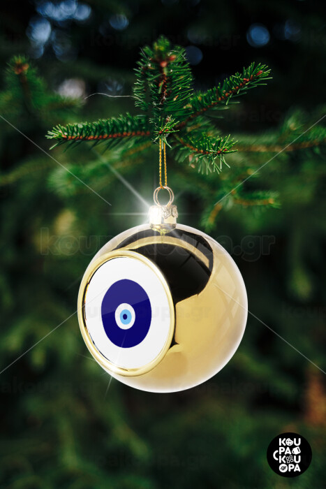 Χάντρα γαλαζιά, Golden Christmas tree ball ornament 8cm