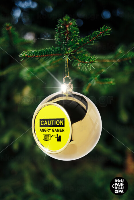 Caution, angry gamer!, Golden Christmas tree ball ornament 8cm