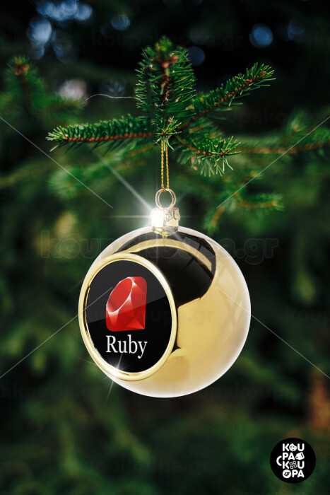 Ruby, Golden Christmas tree ball ornament 8cm