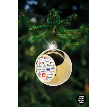 Tech logos, Golden Christmas tree ball ornament 8cm