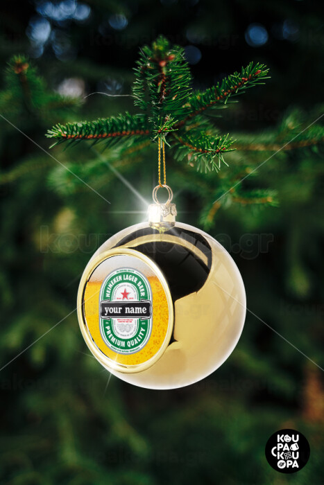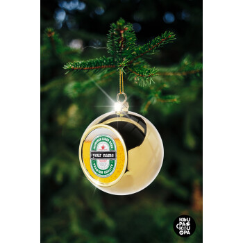 Heineken with name, Golden Christmas tree ball ornament 8cm