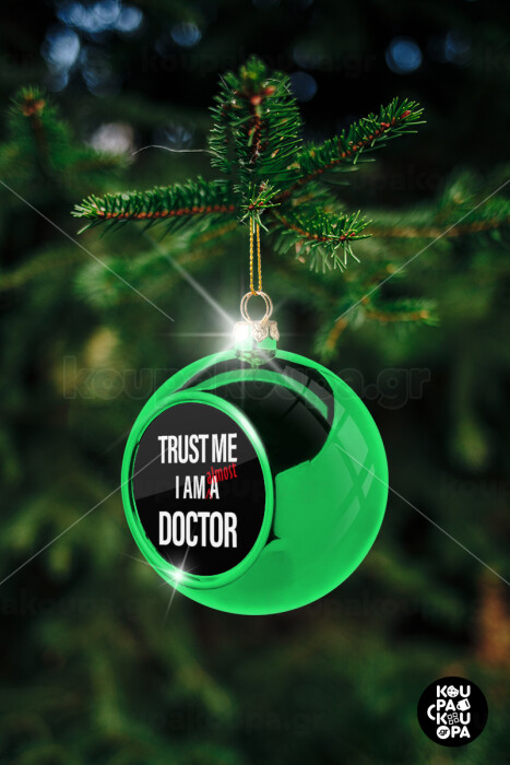 Trust me, i am (almost) Doctor, Green Christmas tree ornament ball 8cm