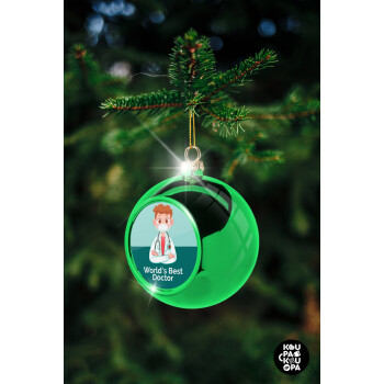 World's Best Doctor, Green Christmas tree ornament ball 8cm