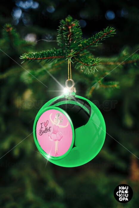 I Love Ballet, Green Christmas tree ornament ball 8cm