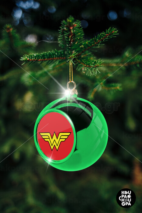 Wonder woman, Green Christmas tree ornament ball 8cm
