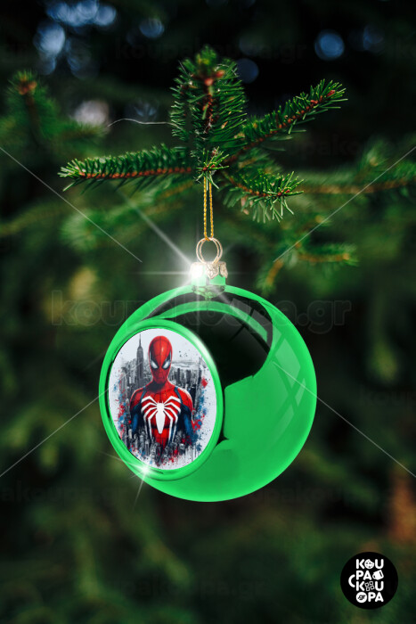 Spiderman City, Green Christmas tree ornament ball 8cm