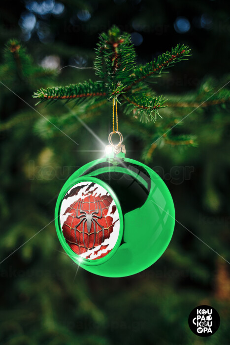 Spiderman cracked, Green Christmas tree ornament ball 8cm